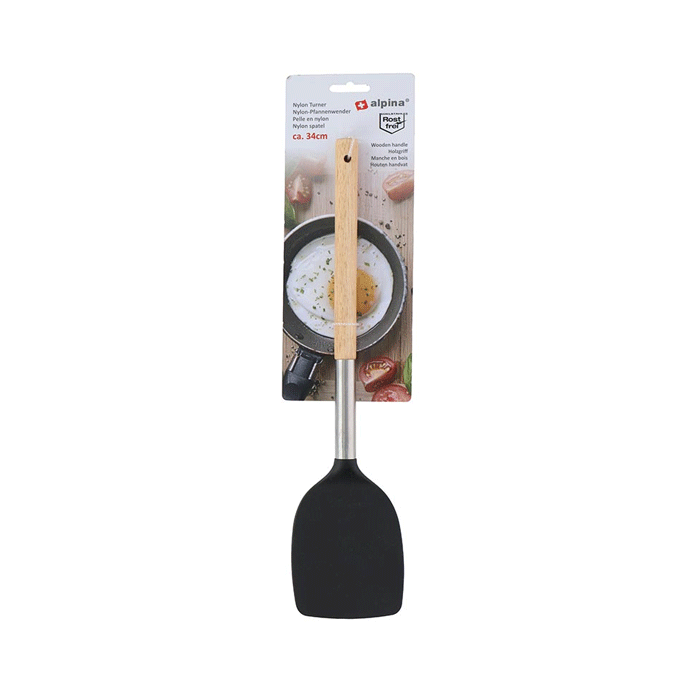Nylon spatel met houten handvat.