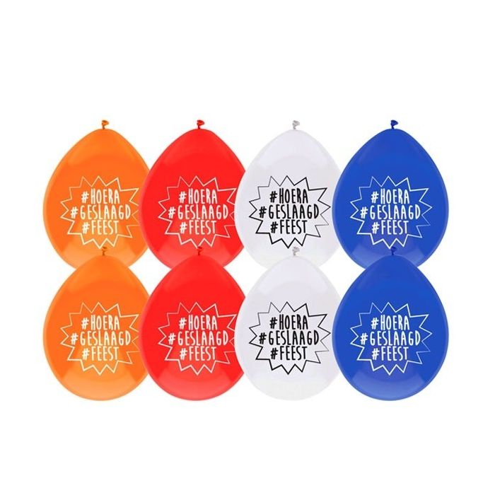 Ballonnen met de tekst '#HOERA #GESLAAGD #FEEST'. Perfect voor een 'Geslaagd' feestje!