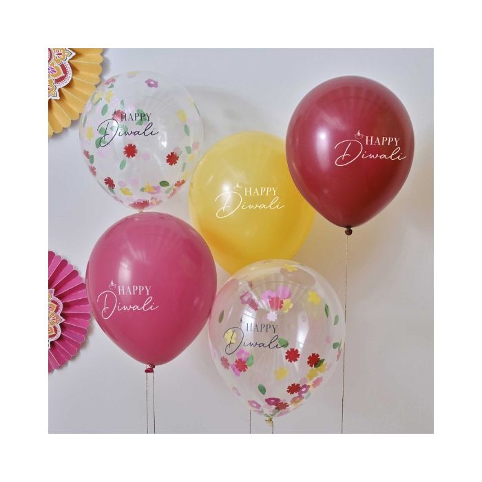 Versier je Diwali-feest met deze prachtige kleurrijke ballonnen. Ze zijn perfect om bij je thuis of op een evenement te decoreren en iedereen een fijne Diwali te wensen!