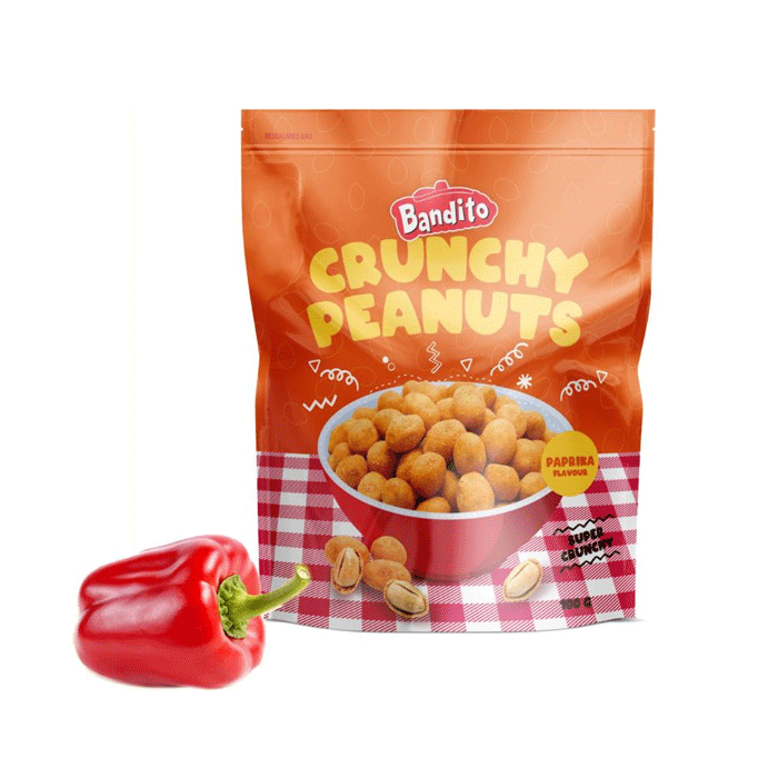 48% pinda's, zetmeel (aardappel, maïs), tarwebloem, suiker, zout, 3% paprikasmaak (zout, specerijen, paprikapoeder, maltodextrine, palmolie, zuurteregelaar (E330)), palmolie, maltodextrine. Kan bevatten: soja, melk, noten, sesamzaad