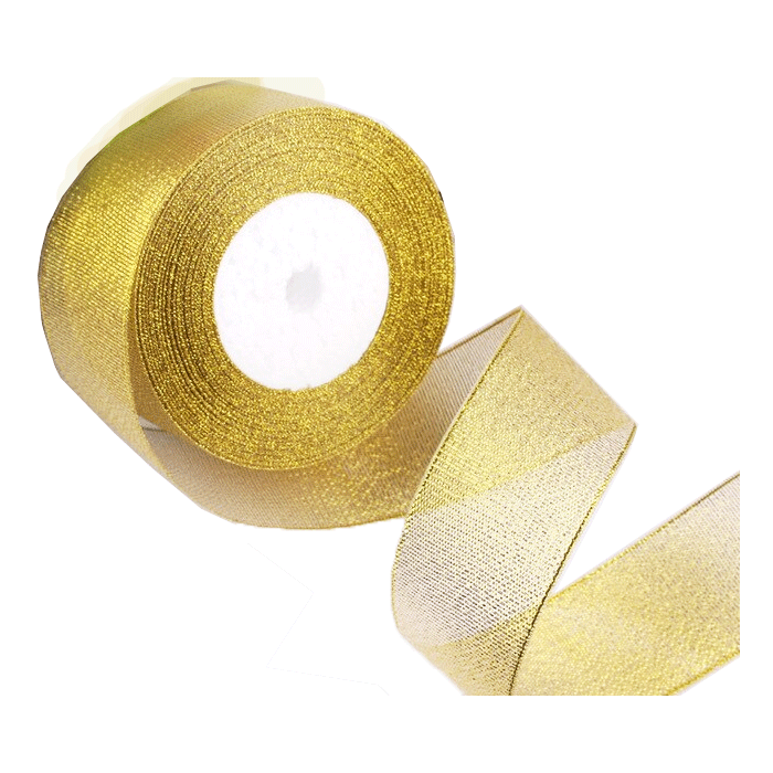 Cadeaulint van polyester in het goud. Op een rol zit 22,8 m lint van 4 cm breed.