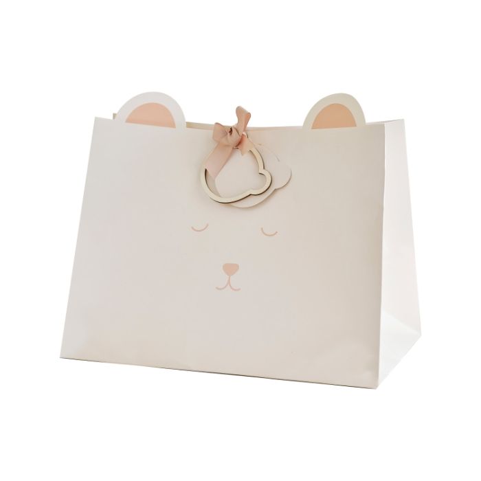 Verpak je cadeaus voor babyshowers, geboortes of verjaardagen met extra liefde met de 'Teddy Bear' cadeautas van Ginger Ray. Deze schattige tas, met een teddyberengezicht, een houten berenhoofdtag en een elegant off-white grosgrain lint, is de perfecte manier om je geschenk te presenteren. De ruime tas is 27,5 cm hoog en 36,.3 cm breed, geschikt voor verschillende geschenken, terwijl de houten tag van 7,6 cm hoog bij 9,2 cm breed een uniek tintje toevoegt. Maak je cadeau extra speciaal door het te presenteren in deze prachtig ontworpen cadeautas die past bij elke bijzondere gelegenheid.
