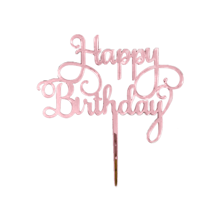 Plastic 'Happy Birthday' taarttopper. Laat je taart er trendy en verzorgd uitzien met deze topper! Ze zijn gemakkelijk te plaatsen op de taart en zijn eventueel herbruikbaar. De toppers zijn verkrijgbaar in het zilver, metallic goud, roségoud en mat zwart en zijn van acryl gemaakt. De topper is ca. 15,5 x 17,5cm (LxH) groot en 1 mm dik.