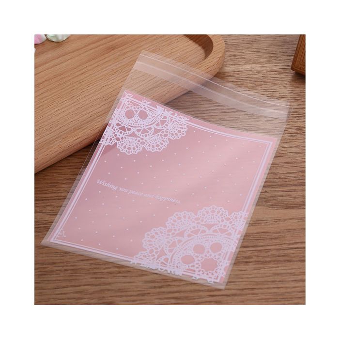 Cellofaan geschenkzakjes met plakstrik. Het zakje is aan één zijde roze gekleurd en aan de zijde bedrukt met de tekst 'Wishing you peace and happiness'. Leuk om te vullen met snoepjes, zeepjes, koekje of ander klein presentje. Het zakje heeft een afmeting van ca. 10 x 12,5 cm (lxh). Indien het zakje is dichtgevouwen, heeft het een hoogte van ca. 10 cm. Eén verpakking bevat 12 zakjes.