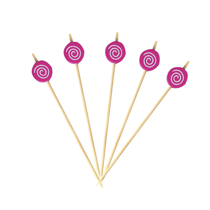 Cocktailprikkers Candy Swirl Hout Roze (24st)
