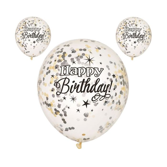 Confetti Ballon Happy Birthday Zwart (5st)