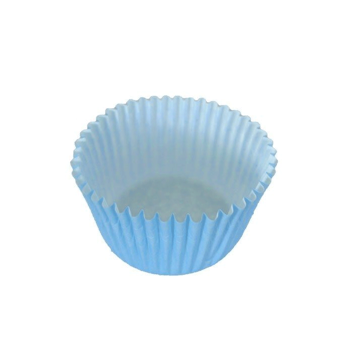 De papieren cupcake vorm heeft een dia van 4,5cm en een hoogte van 3cm. Uitgevouwen heeft het een dia van 11cm. Verpakt per 100 stuks in de kleur blauw.