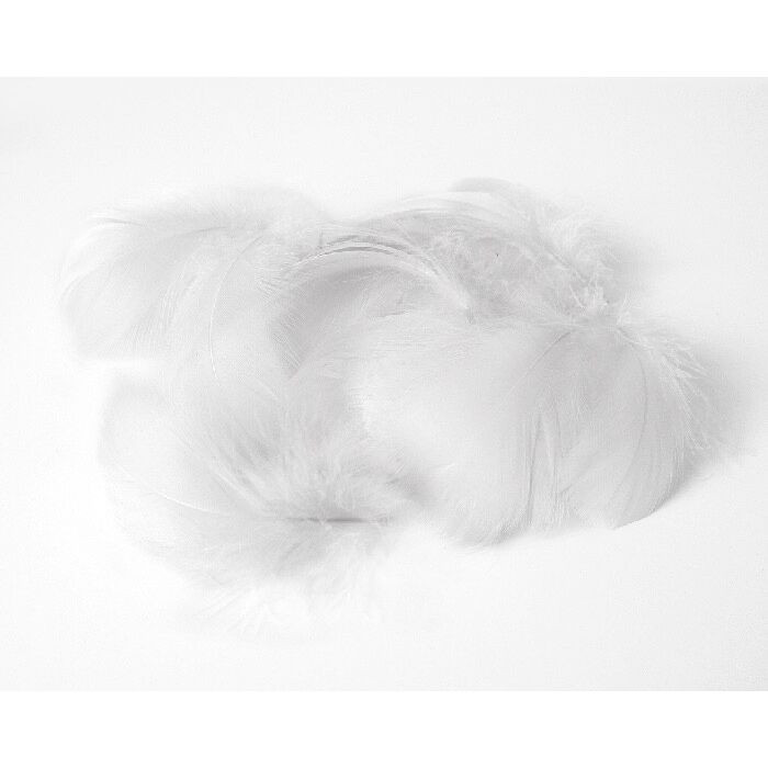 Decoratieve witte veertjes om de tafel of een cadeautje mee te versieren. De veren zijn ongeveer 12-15 cm lang. Eén verpakking bevat ongeveer 50 veren.
