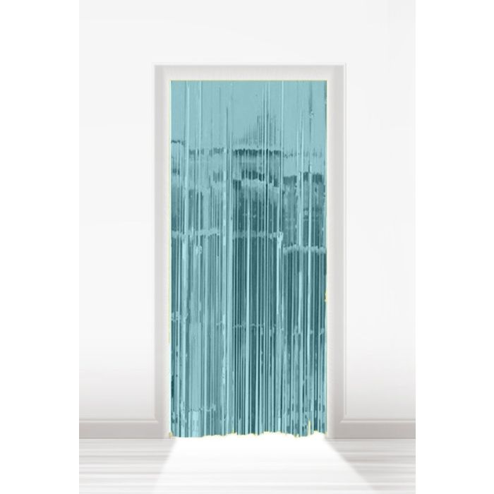 Matte blauwe deurgordijn van folie. Perfect als een backdrop of feestelijke entree op elk feestje! De deurgordijn is 1 meter breed en 2 meter hoog.