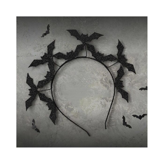 Maak je halloween outfit compleet met deze griezelige vleermuizen diadeem. Deze one-size hoofdband bevat vliegende vleermuizen en glitterdraad details.