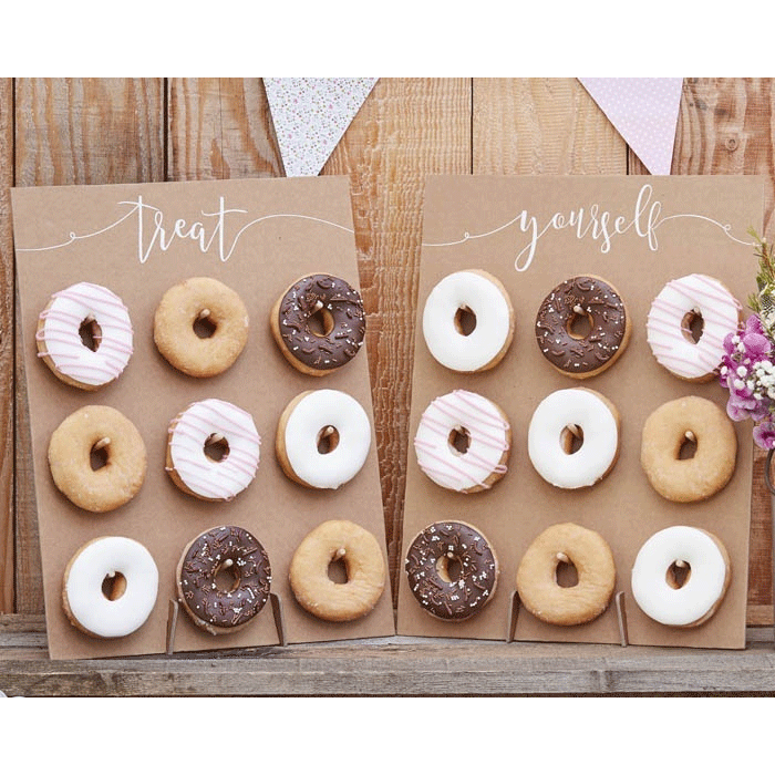 Trakteer jullie gasten op heeriljke donuts met deze kraft / rustieke donut walls. Bovenaan de borden staat in kalligrafiestijl 'Treat yourself'. De donut walls zijn van stevig karton en zijn 42 x 32 cm groot.