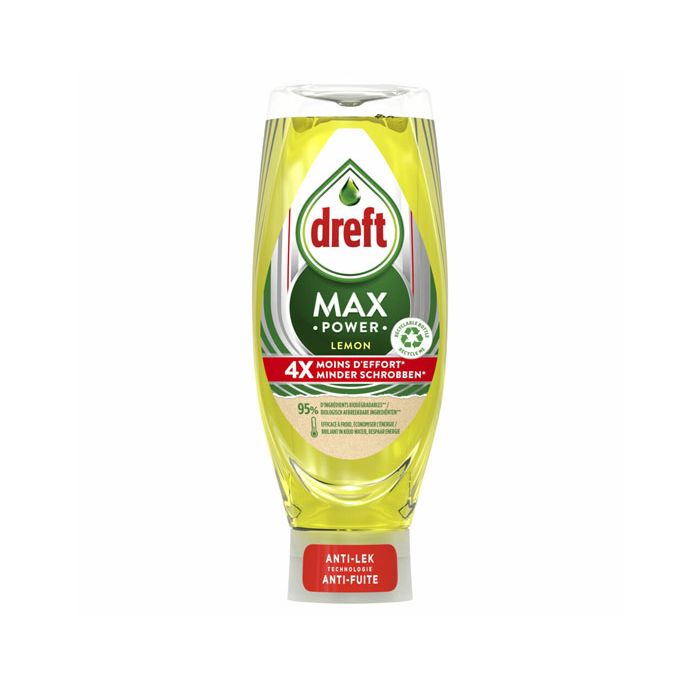 Dreft Max Power Lemon vloeibaar afwasmiddel wordt geleverd in een ondersteboven fles zonder flipdop, zodat je kunt schoonmaken zonder gedoe. Het maakt de afwas snel en eenvoudig, zodat je sneller klaar bent in de keuken.