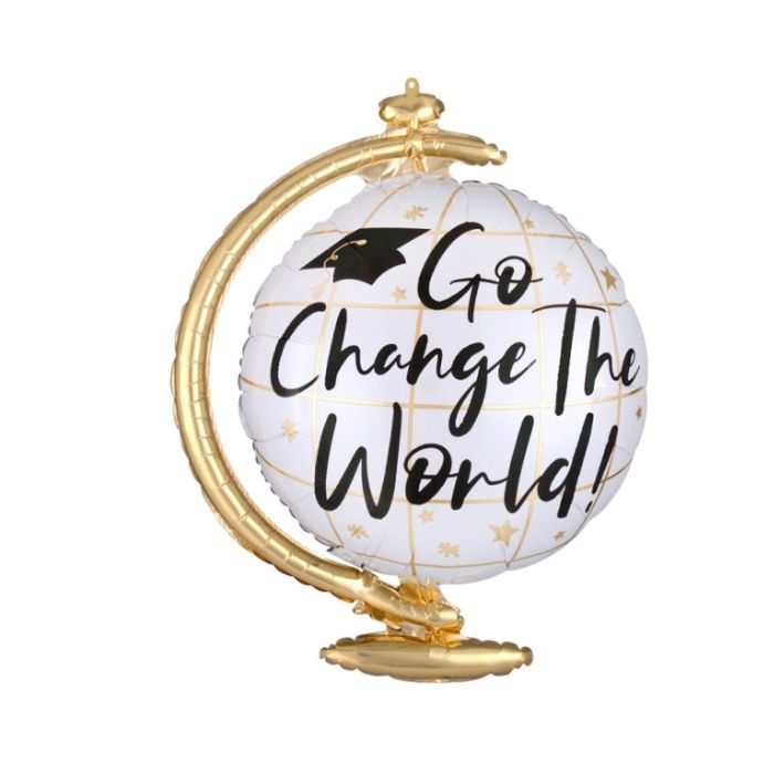 Deze inspirerende wereldbolvormige ballon is perfect om iemand aan te moedigen om de wereld te veranderen en zijn of haar dromen na te streven. Of het nu is voor een afstudeerfeest, een verjaardag of gewoon zomaar, dit cadeau zal zeker een glimlach op het gezicht van de ontvanger toveren. Het formaat van 58 x 58 cm maakt het een opvallende toevoeging aan elke feestelijke gelegenheid. Of je nu kiest om de ballon met lucht of helium op te blazen, hij zal zeker de boodschap van positiviteit en ambitie overbrengen. Laat deze ballon een symbool zijn van hoop en moed voor de persoon die klaar staat om de wereld te veranderen!