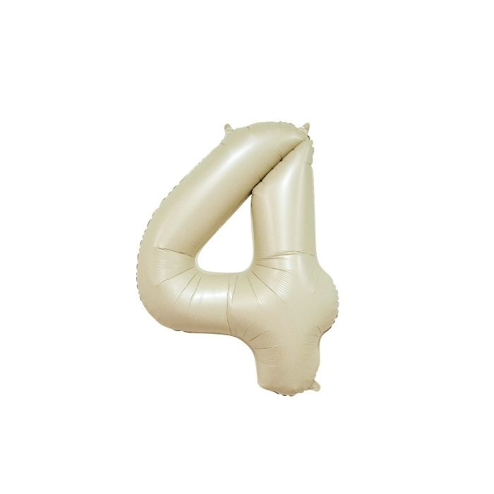 Vier een speciale verjaardag of belangrijk jubileum in stijl met deze schitterende creme folieballon in de vorm van het cijfer vier. Met een indrukwekkend formaat van 86 centimeter vormt deze ballon direct het stralende middelpunt van jouw feestlocatie. De elegante subtiele glans geeft de decoratie een luxe sfeer die perfect past bij elke bijzondere mijlpaal.