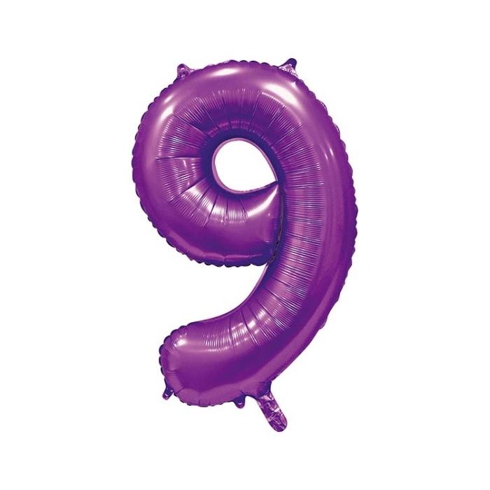 Folieballon Cijfer 9 - Satijn Paars - 86cm
