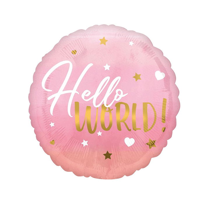 Folieballon Hello World! Roze (43cm)