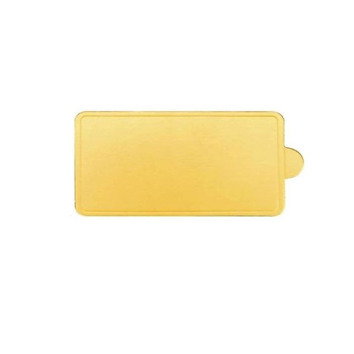 Rechthoekige gebakskarton of onderlegger in de kleur goud. De onderlegger is geschikt voor een gebakspunt en is voorzien van een lipje om de gebakspunt makkelijk op te kunnen tillen. De onderlegger heeft een afmeting van 11,5x6,5cm.