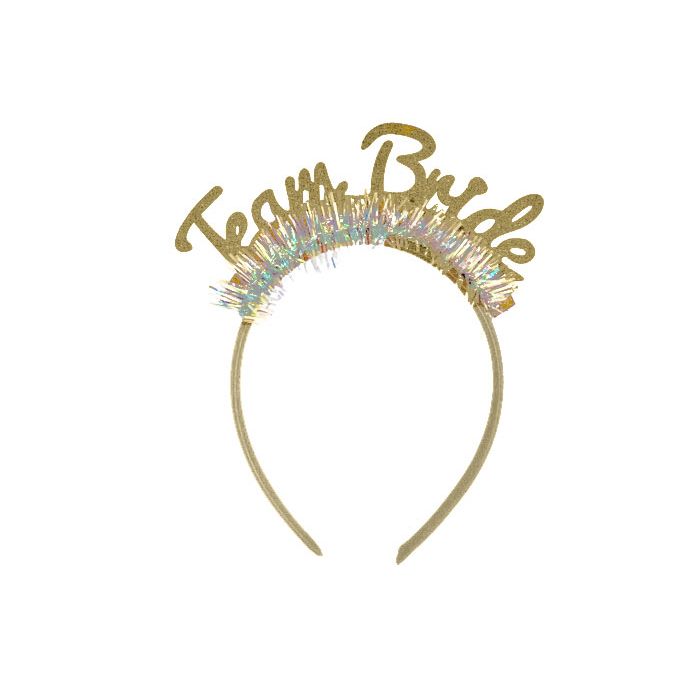 Met deze leuke glitter diadeem met de tekst 'Team Bride' laat je zien dat je deel uitmaakt van deze gezellige vrijgezellenfeest / bachelorette. De diadeem is goud van kleur.