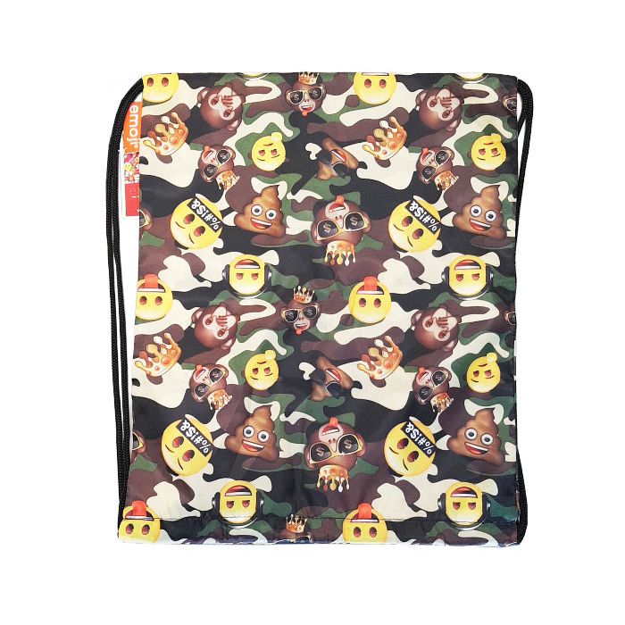 Leuke Emoji gym/zwemtas die met trekkoorden dicht gaat. Ideaal voor je zwem, gym of sportkleding. De tas heeft een vrolijk uiterlijk met afbeeldingen van emoji's en een camouflage achergrond. De tas is aan beide kanten geprint.