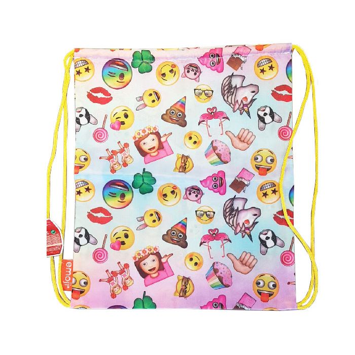 Leuke Emoji gym/zwemtas die met trekkoorden dicht gaat. Ideaal voor je zwem, gym of sportkleding. De tas heeft een vrolijk uiterlijk met afbeeldingen van emoji's en een gekleurde achtergrond. De tas is aan beide kanten geprint.