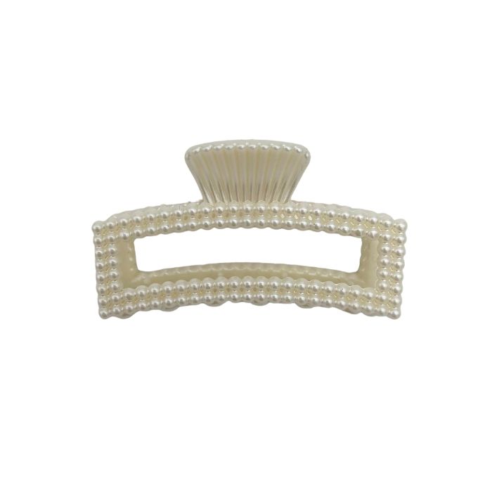 Elegante creme kleurige haarklem met pareltjes. Met deze clip kun je je haar in een handomdraai gedeeltelijk of helemaal vastzetten.