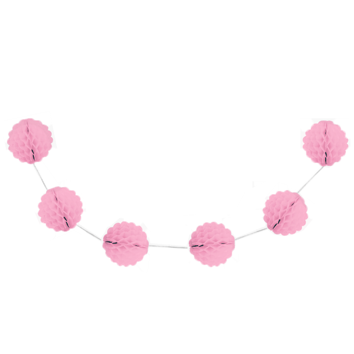 3 meter lange stringdecoratie met 8 honeycomb bollen, verkrijgbaar in diverse kleuren. De tissue honeycomb bollen hebben een diameter van 10 cm.