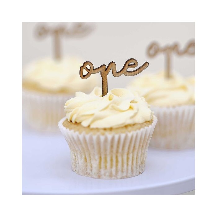 Houten Cupcake Topper One Ginger Ray (6st)