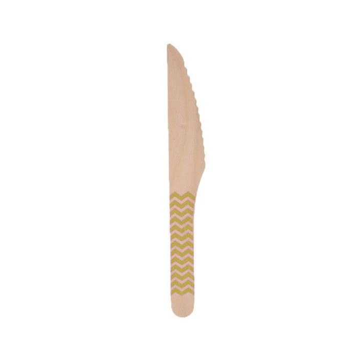 Houten messen met gouden zigzap strepen (bedrukt aan één zijde). Een verpakking bevat 10 vorken. Afmeting: ca. 16 cm lang