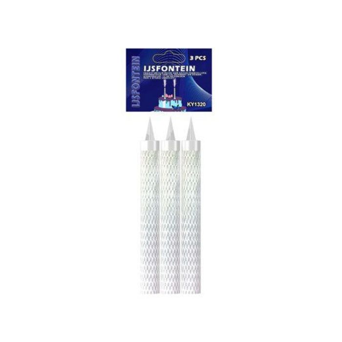 De ijsfontein is 12cm lang en heeft per stuk ca 45 sec. lange brandtijd. De ijsfontein is per 3 stuks verpakt.