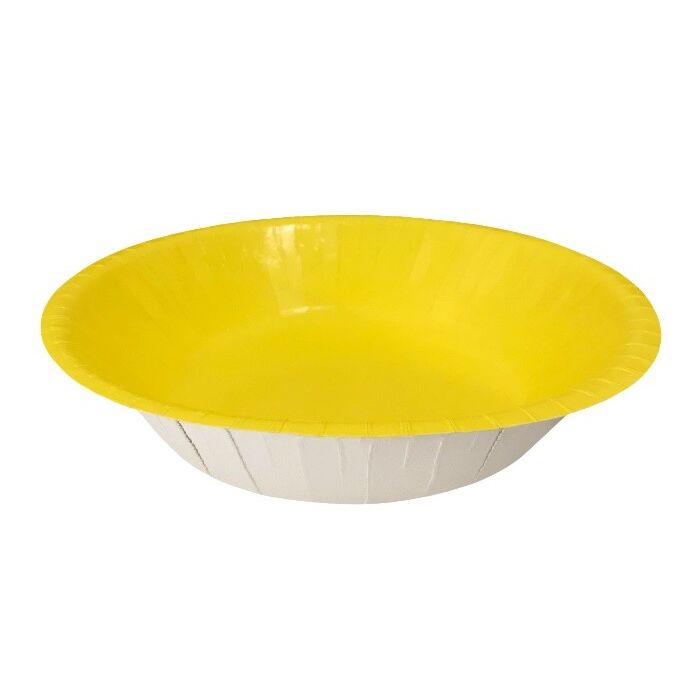 Kartonnen kommen in gele kleur. De kommen hebben een doorsnede (bovenkant) van 18 cm. Een verpakking bevat 20 kommen.