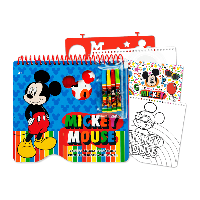 Leuke Mickey Mouse kleurblok met sjablonen, stickers en viltstiften.