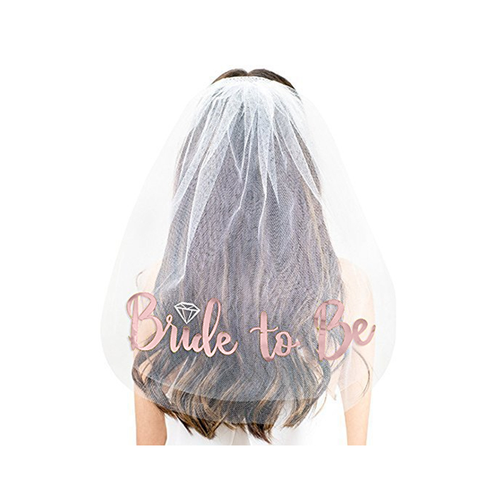 Witte sluier met metallic roségouden tekst 'Bride to be' voor de aanstaande bruid. Leuk voor een Bachelorette party!