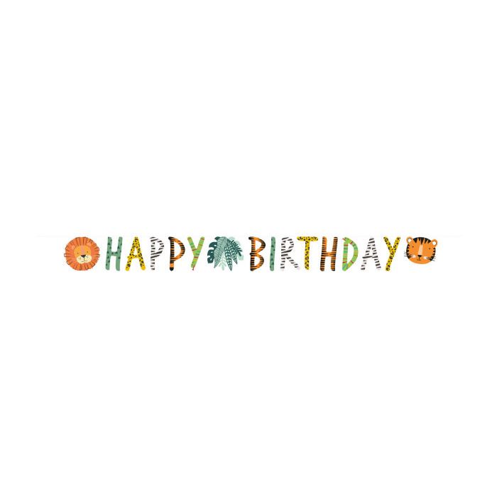 De papieren letterslinger Get Wild Happy Birthday maakt de versiering voor een Jungle en Safari feestje helemaal compleet. De slinger is 180x15cm groot.