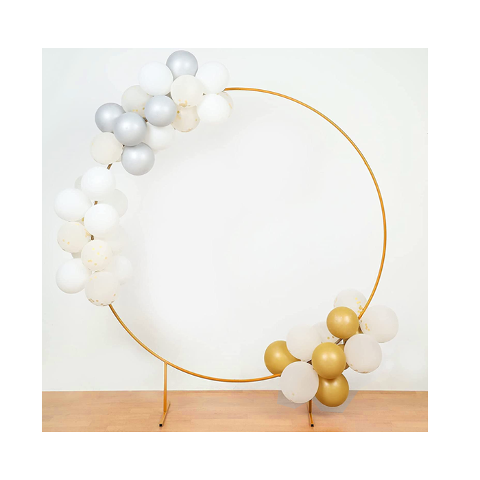 Maak indruk op je gasten met deze gouden metalen backdrop frame cirkel. Geschikt voor elke feestgelegenheid zoals een bruiloft, verjaardag, babyshower of jubileum. Je kunt de backdrop versieren met bijvoorbeeld ballonnen en/of bloemen. De backdrop heeft een doorsnede van 2 meter en zet je eenvoudig zelf in elkaar. Het frame is gemakkelijk te demonteren voor gemakkelijk opbergen. Daarnaast is de backdrop perfect voor professioneel gebruik of verhuur.