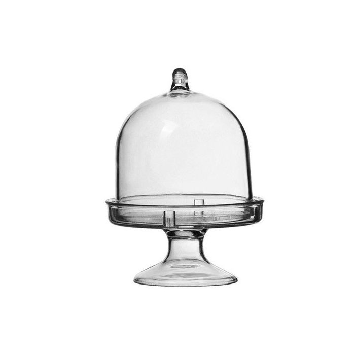 Schattige mini mica stolpjes in wit transparant. De stolpjes hebben een diameter van 5,5 cm en zijn ca. 7,5 cm hoog. Een verpakking bevat 12 stuks. Tip: doe een macaron in een stolp voor de sweets table!