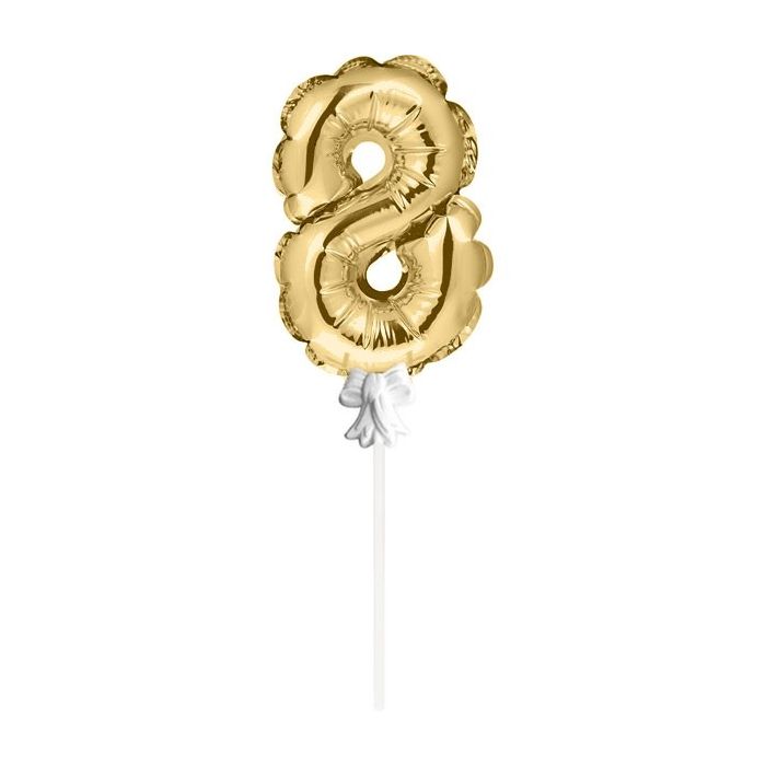 Mini Folieballon Caketopper Goud Cijfer 8