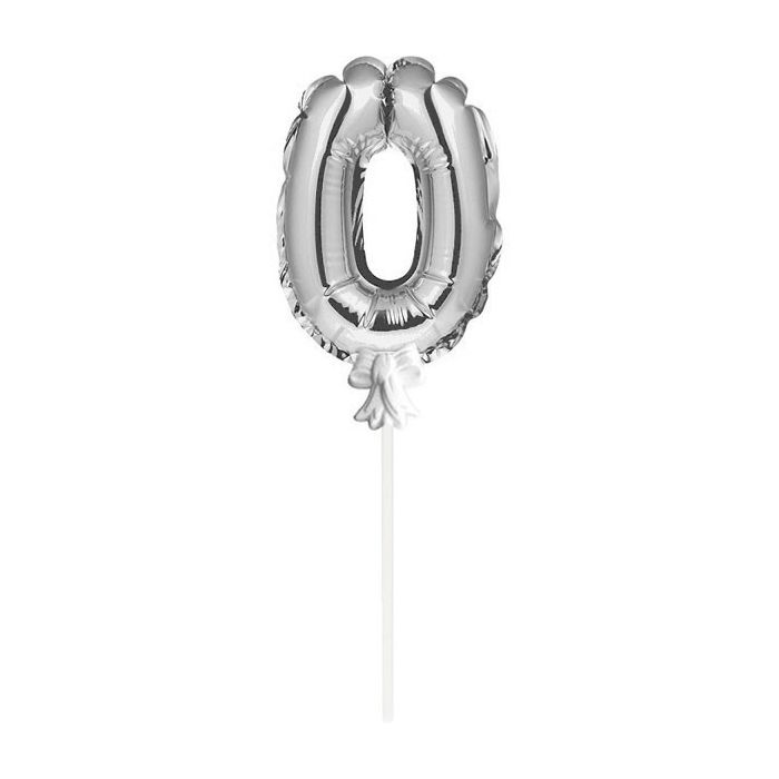 Mini Folieballon Caketopper Zilver Cijfer 0