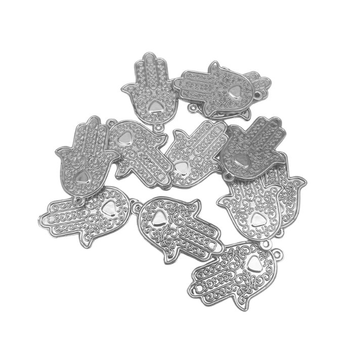 Dit prachtige zilveren hangertje in de vorm van de Hand van Fatima is een mooie toevoeging aan elk geschenk. Het symboliseert bescherming, geluk en voorspoed. Met het kleine oogje kun je het handje gemakkelijk bevestigen aan een bedankje, waardoor het een persoonlijke en betekenisvolle touch krijgt. De afmetingen van het handje zijn 4 x 3 cm en het wordt geleverd in een verpakking met 12 stuks, zodat je genoeg hebt om aan verschillende cadeautjes te bevestigen. Voeg deze charmante hanger toe aan je geschenken en verspreid positiviteit en goede energie naar de ontvangers.