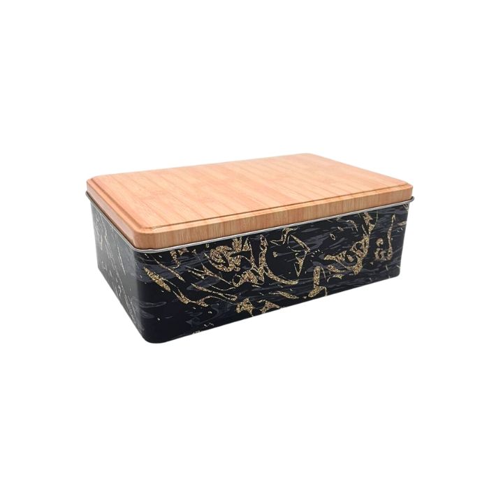 Mooie bewaarblik met een deksel, voorzien van een decoratieve zwart & goud marmer print, waar je allerlei etenswaren in kunt opbergen zodat deze langer vers blijven. De rechthoekige opbergblik heeft een afmeting van 20 x 13 x 7 cm.