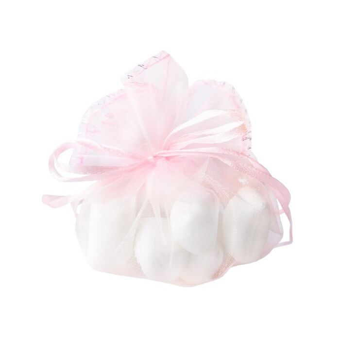 Ronde organzazak in het roze. Deze ronde organzazak met lint heeft een diameter van 24 cm. Door aan het lint te trekken wordt het platte stuk stof een mooi bol zakje. Per 12 verpakt