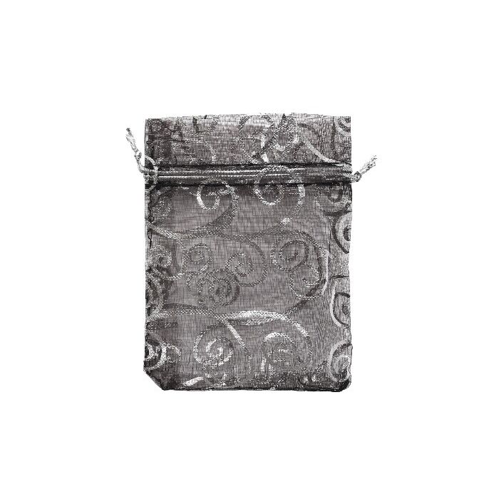 Kleine organzazak in Barok stijl de kleur zwart. Het zakje heeft een afmeting van 7 x 9 cm. Eén verpakking bevat 12 organzazakjes.