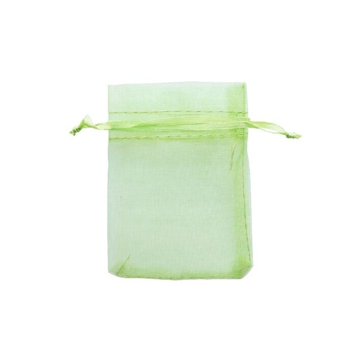 Kleine organzazak in de kleur groen. Het zakje heeft een afmeting van 7 x 9 cm. Eén verpakking bevat 12 organzazakjes.