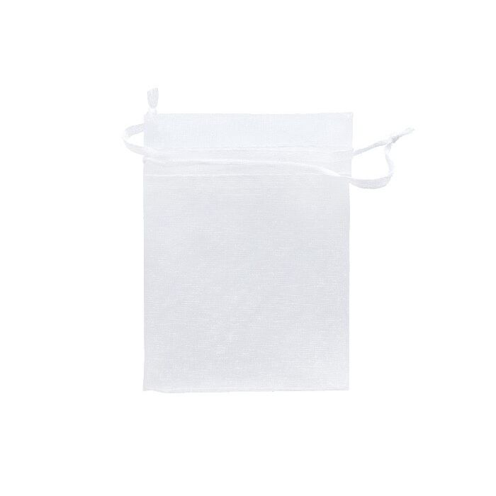 Kleine organzazak in de kleur wit. Het zakje heeft een afmeting van 7 x 9 cm. Eén verpakking bevat 12 organzazakjes.