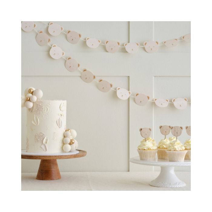 Maak je babyshowerdecoratie compleet met deze teddybeer-babyshower-slinger van Ginger Ray. Met prachtige karameltinten en houten accenten is onze Teddyberencollectie perfect om de nieuwe aankomst te vieren. We can bear-ly wait!
