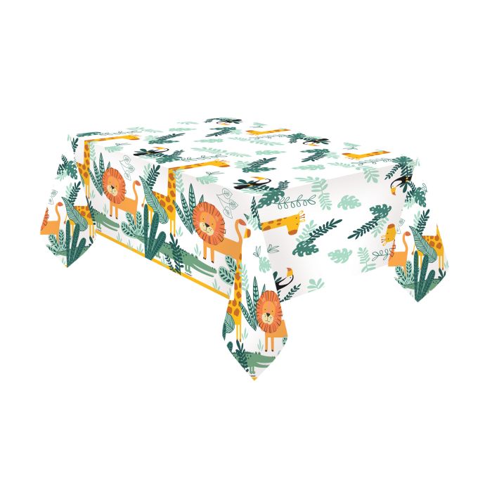 Wild jungle tafelkleed van stevig papier. Perfect voor een kinderfeestje met een jungle thema. De tafelkleed heeft een afmeting van 120x180cm.