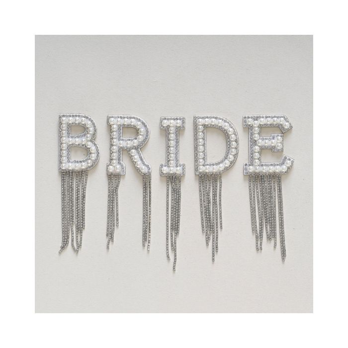 Inclusief: 5 zelfklevende parelmoerletters met het opschrift 'BRIDE' en hangende diamten