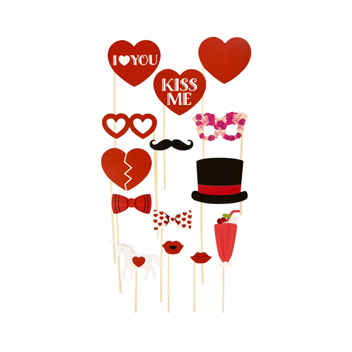 Vier de liefde met deze romantische photobooth props! Een set bestaat uit 14 photobooth props.