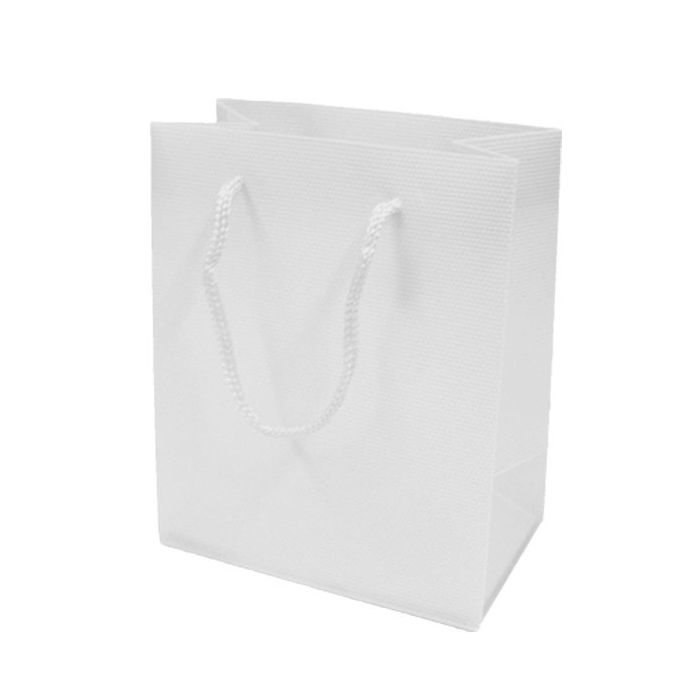 Plastic cadeautas maat S in het wit. De afmeting van een tasje is 14 x 11,5 x 6,5 cm. Een verpakking bevat 12 tasjes.