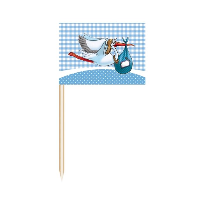 Leuke prikkers met een geboorte reiger in het blauw. De prikkers zijn 6,5x3,3cm (LxB) en zijn verpakt per 50 stuks.