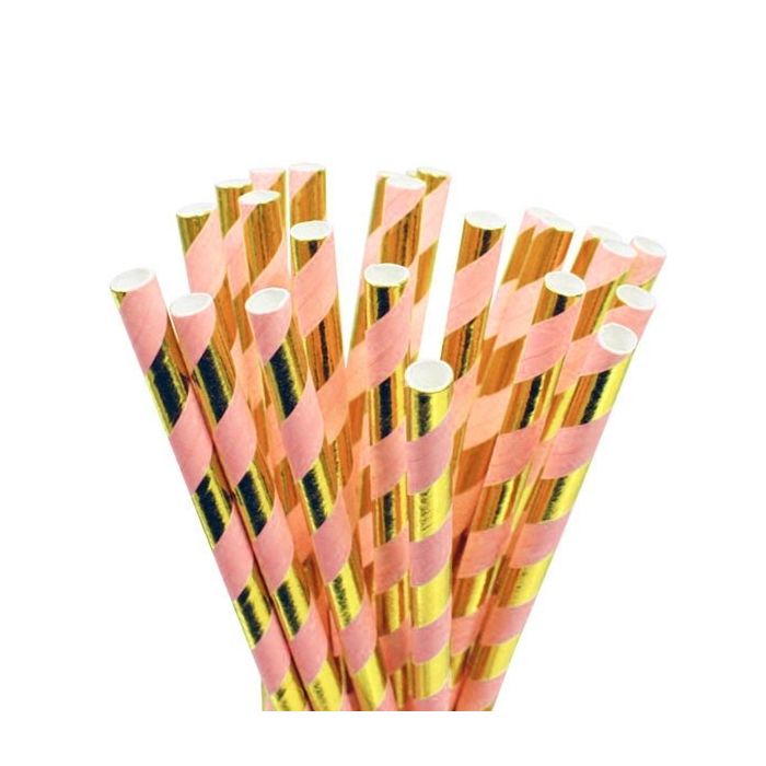 De funky kartonnen rietjes zijn duo gemixt van kleur: metallic goud met een pastelkleur. De rietjes zijn 19,5cm lang en verpakt per 12 stuks.